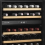 La cave à vin inox TFW permet d’exposer les bouteilles de vin avec un style contemporain. La cave à vin est dotée d’un extérieur noir et d’un bâti de porte et d’une poignée en acier inoxydable. La porte vitrée transparente, l’intérieur noir et l’éclairage LED donne à ce modèle un style moderne et élégant, et les étagères coulissantes en bois sont à la fois jolies et très pratiques. En plus de son design, cette cave à vin possède un groupe de réfrigération moderne permettant de réduire la chaleur, le bruit et la consommation d’énergie. Ce modèle possède deux zones de température pouvant être réglés avec une différence de température de 7°C maximum, pour pouvoir stocker du vin blanc à 9°C dans une zone et du vin rouge à 16°C dans l’autre, par exemple.