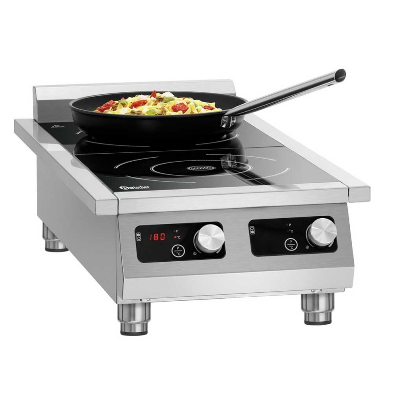 Que ce soit dans la zone de cuisson à l'avant ou comme élément fixe dans la cuisine, ce réchaud à induction séduit comme appareil de table au style élégant. Équipé de 2 grandes zones de cuisson pour un diamètre de casserole jusqu'à 280 mm et une possibilité de commuter entre les niveaux de puissance et la température, il s'agit d'un compagnon fiable avec une puissance totale de 7 kW.