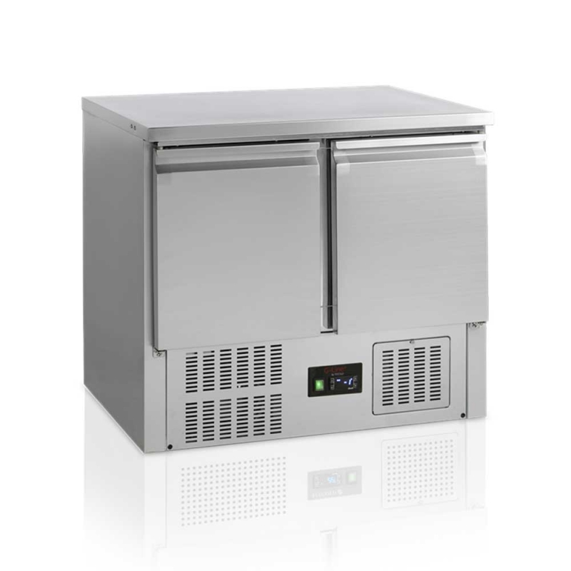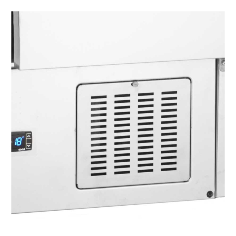 Le rapport qualité/prix de ces tables réfrigérées positives de la gamme G-Line est idéal pour les cuisines à forte activité. Elle présente des placards aux dimensions GN1/1 ainsi que des tablettes réglables pour une utilisation optimale. Le groupe de réfrigération se trouve en dessous, et non sur le côté : cela permet de gagner de la place et de pouvoir l’utiliser sans difficulté dans une petite cuisine.