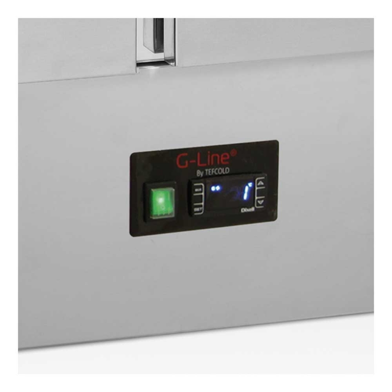Le rapport qualité/prix des tables de préparation de la gamme G-Line est idéal pour les cuisines à forte activité. Cette table de préparation présente des placards aux dimensions GN1/1 ainsi que des tablettes réglables pour une utilisation optimale. Elle est compatible avec les bacs gastro 1/6, 1/3 et 1/9 de 150 mm de profondeur max. Le groupe de réfrigération se trouve sous la table de préparation, et non sur le côté : cela permet de gagner de la place et de pouvoir l’utiliser sans difficulté dans une petite cuisine.
