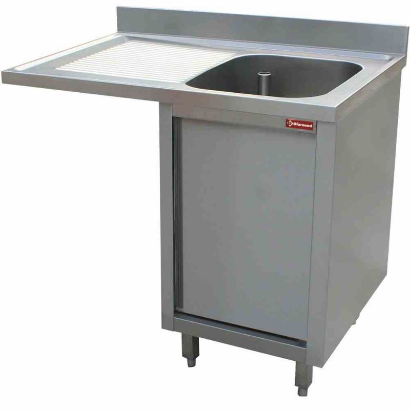 Le plan supérieur est embouti avec un dosseret arrière de 100 mm. La dimension de la cuve est de 600 x 500 x 325 mm. Le fond extérieur des cuves est revêtu d'un isolant phonique. La porte est battante et la tablette renforcée.