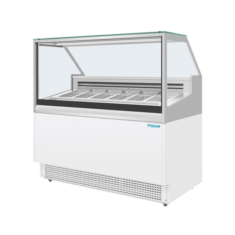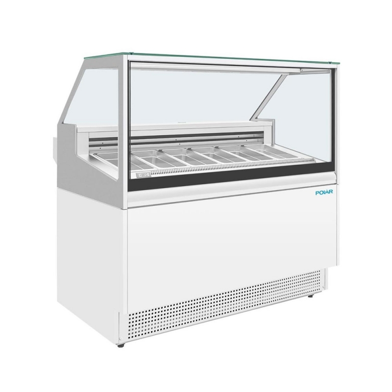 Transformez votre service de desserts avec la vitrine à glace Polar Série U, une solution extrêmement fiable conçue pour mettre en valeur et stocker vos glaces préférées.