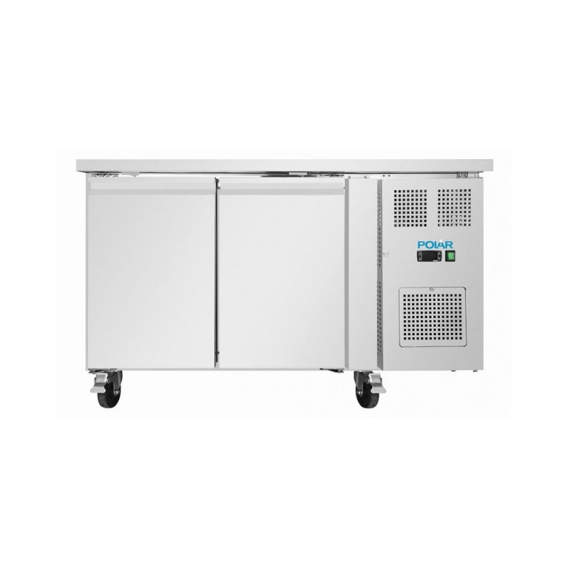 La table réfrigérée positive deux portes Polar série U profondeur 600 mm offre une solution de refroidissement efficace et pratique pour les cuisines professionnelles. Combinant un espace de stockage fiable et performant compatible GN avec un plan de travail robuste en acier inoxydable, cet appareil offre à la fois un espace de stockage réfrigéré indispensable et une surface de préparation pratique dans un design compact et peu encombrant. Sa capacité nette généreuse de 155 litres, répartie sur deux étagères robustes, offre suffisamment d'espace pour tous vos produits frais, vos produits laitiers et vos préparations.