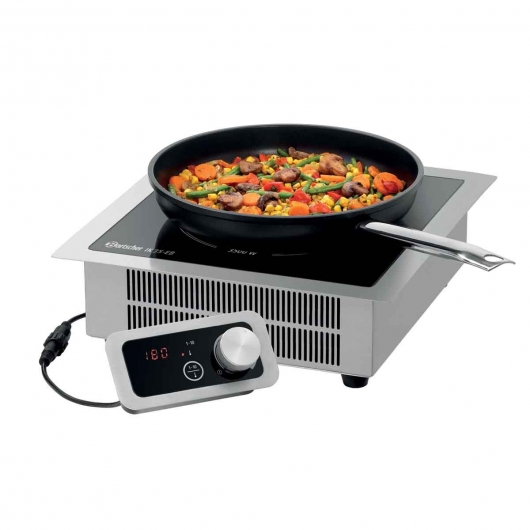 Cette plaque à induction est encastrable et le panneau de commande est séparé et encastrable également. La commande déportée permet le réglage de la température et de la puissance. Ce réchaud est idéal pour les buffets, les traiteurs, ou les foodtrucks.