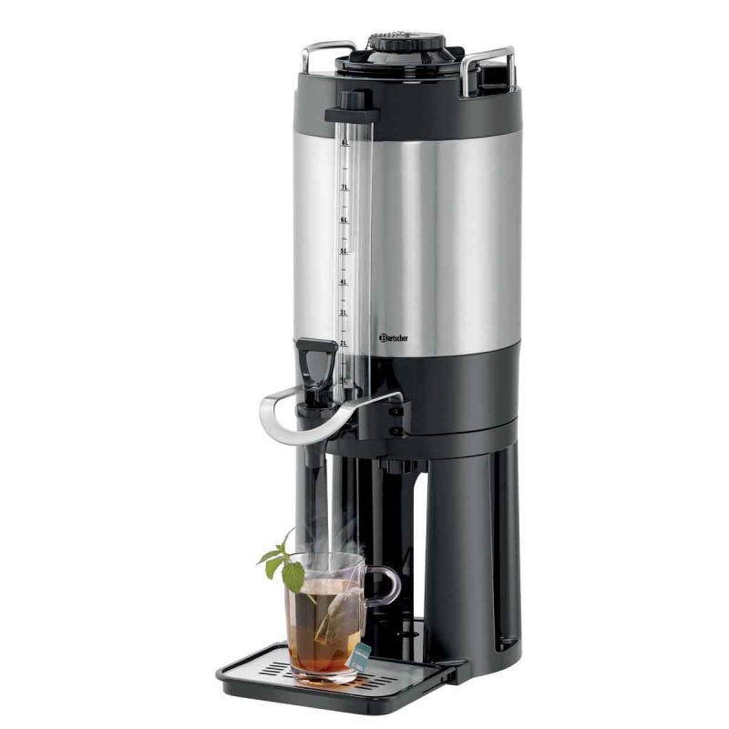 Un indicateur de niveau vous montre la contenance de liquide dans l'appareil (jusqu'à 8 L) et le couvercle étant complètement amovible, il est facile à nettoyer. Grâce à l’isolation par le vide à double paroi, le distributeur maintient les boissons s’y trouvant à une température suffisamment basse ou élevée selon les boissons. Bénéficiez d'une perte minimale d’environ 1 °C par heure, pendant plusieurs heures. Pour servir la boisson, placez un récipient (tasse, verre, gobelet) sur le bac d’égouttage sous le robinet de vidange. Ne dépassez pas 205 mm pour la hauteur du récipient.