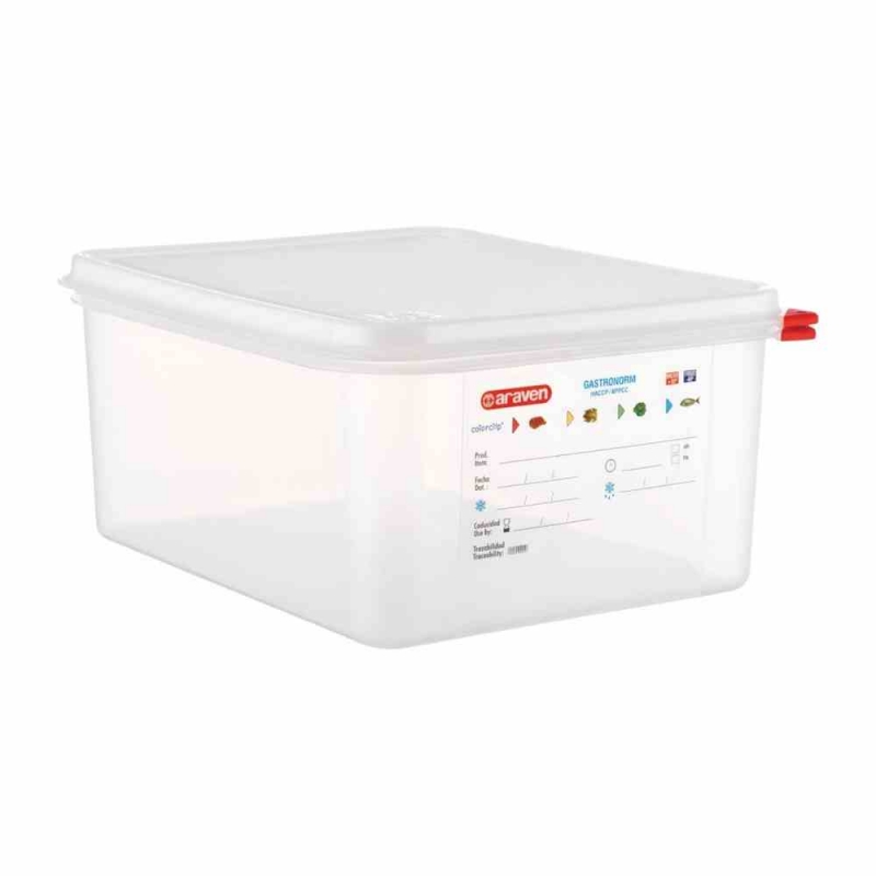 Ces conteneurs hermétiques sont disponibles en plusieurs dimensions Gastro. Chaque boîte est fournie avec un jeu d'étiquettes couleur (rouge, jaune, vert et bleu) ainsi qu'une étiquette d'identification permanente et effaçable. Grâce à cela, tous les aliments seront clairement identifiés et datés. Plage de température de -40°C à +95°C. Passent au lave-vaisselle.
