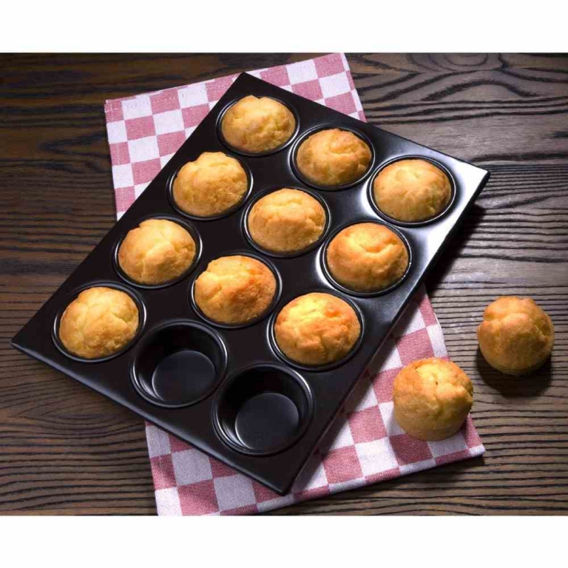 Remarquablement polyvalente et facile à utiliser, cette plaque à muffins antiadhésive Vogue de 12 moules est un incontournable pour tout petit café, boulangerie ou cantine. Bénéficiant d'une surface antiadhésive, cette plaque à muffins permet de retirer vos préparations sans dommages, garantissant que vos spécialités soient toujours impeccablement présentées. En aluminium de haute qualité, la plaque est également exceptionnellement durable, elle résiste aux chocs sans s'endommager.