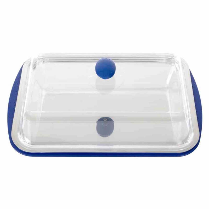 Ensemble de plateau et couvercle de 5 pièces comprenant un plateau acier inoxydable, un plateau plastique, couvercle avec poignée et 2 éléments réfrigérants. Eléments réfrigérants supplémentaires vendus séparément.