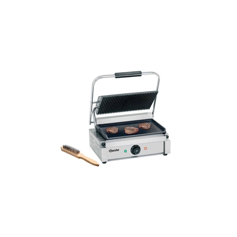 Ce grill optimisé pour les snacks est idéal pour griller les paninis, foccacias, pitas. Il peut aussi griller viandes , poissons et légumes, un grill polyvalent par définition. Sa surface de grill est large et disponible avec une face rainurée et une face lisse. Convient à un usage professionnel intensif.